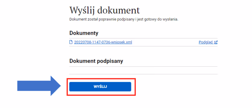 Krok 17: Po skutecznym złożeniu podpisu wyślij wniosek.